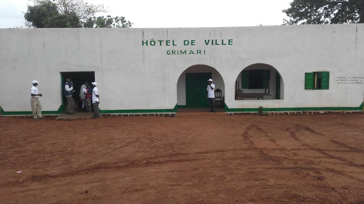 La sous-préfecture de Grimari (80 km à l’ouest de Bambari, chef-lieu de la préfecture de la Ouaka) a désormais une mairie réhabilitée et fonctionnelle. La remise officielle des clés s’est tenue le vendredi 23 mars 2018 au sein du nouveau bâtiment réhabilité, en présence de nombreuses autorités et leaders communautaires de la ville. « La réhabilitation de cet hôtel de ville est le signe que la restauration de l’autorité de l’Etat est bien une réalité dans la Ouaka et particulièrement dans la localité de Grimari », a indiqué le sous-préfet de Grimari, Alliance Saitoua-Dampian, qui n’a pas manqué de remercier la MINUSCA pour son appui au redémarrage de la vie administrative et socio-économique dans sa sous-préfecture.
