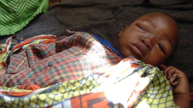 Des personnes déplacées font la queue pour recevoir l'aide du PAM dans la province du Sud-Kivu, en République démocratique du Congo. Photo : PAM/Musa Abema