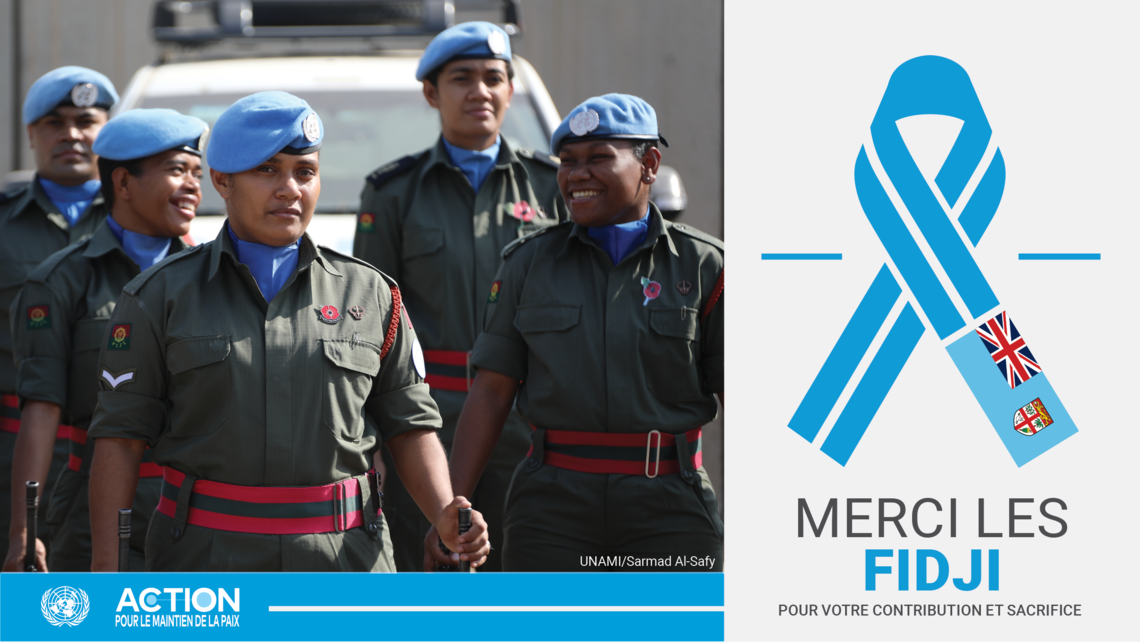 Ce pays du Pacifique Sud fournit actuellement près de 350 agents en uniforme à sept opérations de paix des Nations Unies dans le monde. Aujourd'hui, son plus grand déploiement de plus de 160 policiers des Nations Unies est la Mission d'assistance des Nations Unies pour l'Iraq (MANUI). L'armée et la police fidjiennes maintiennent une présence auprès de la Mission des Nations Unies au Soudan du Sud (MINUSS).