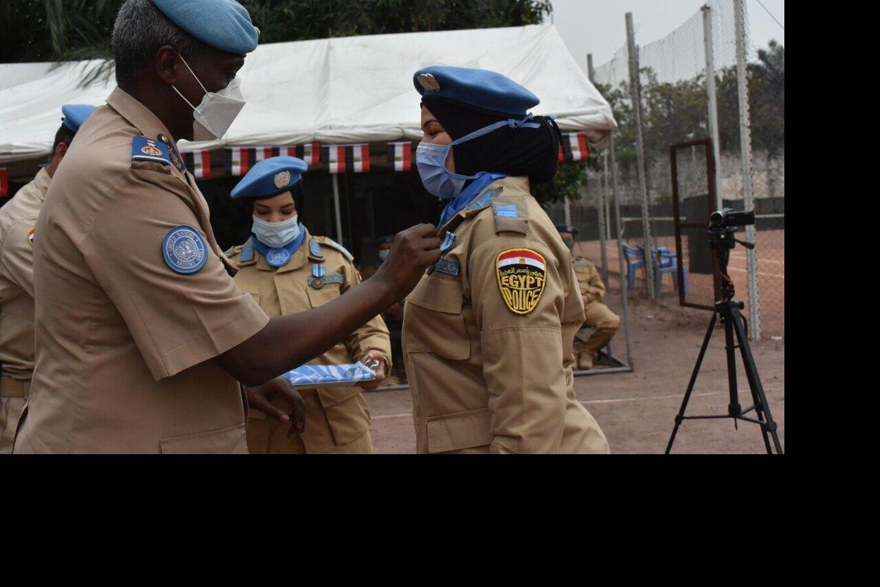 Kinshasa : 180 officiers de l'Unité de police constituée de l’Égypte décorés de la médaille des Nations unies. Photo MONUSCO/UNPOL Cent quatre-vingts (180) membres de l’Unité de Police Constituée de l’Egypte (EGYFPU-2), dont…