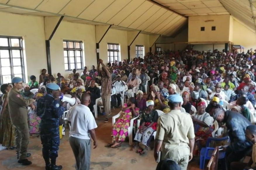 UNPOL sensibilise des déplacés de Beni, à Butembo, contre la maladie à Virus Ebola. Photo MONUSCO/UNPOL Butembo, le 02 juillet 2019 – L’équipe Task-Force Ebola et les Officiers de Police Individuels de la Composante Police…