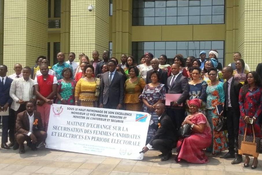 Photo de famille après la séance de restitution d’une enquête menée par le Bureau de Consultation en Genre, Participation Citoyenne et Développement (BCGPCD sur les besoins particuliers des femmes candidates aux élections…