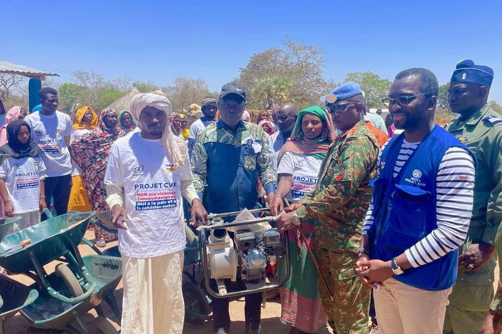 Le 27 mars 2025, la MINUSCA a remis des kits de fin de formation à 100 bénéficiaires, dont la moitié sont des femmes, du Programme de réduction de la violence communautaire (CVR) pour le cycle 2023-2024 à Bashama, une…