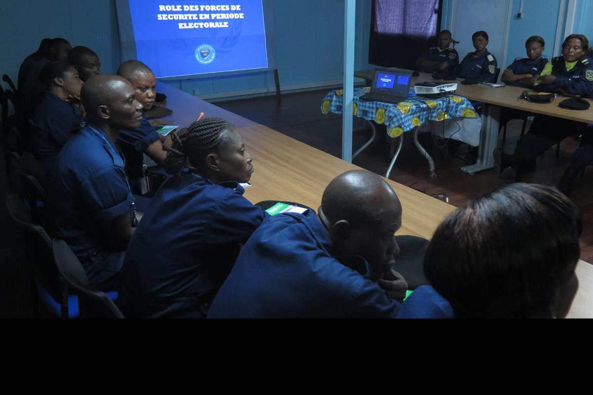 Des policiers congolais en formation sur la sécurisation du processus électoral à Kananga. Photo MONUSCO/Laurent Sam OUSSU Kananga, le 20 avril 2018 – Dans le cadre du processus électoral en cours, la Police des Nations unies…