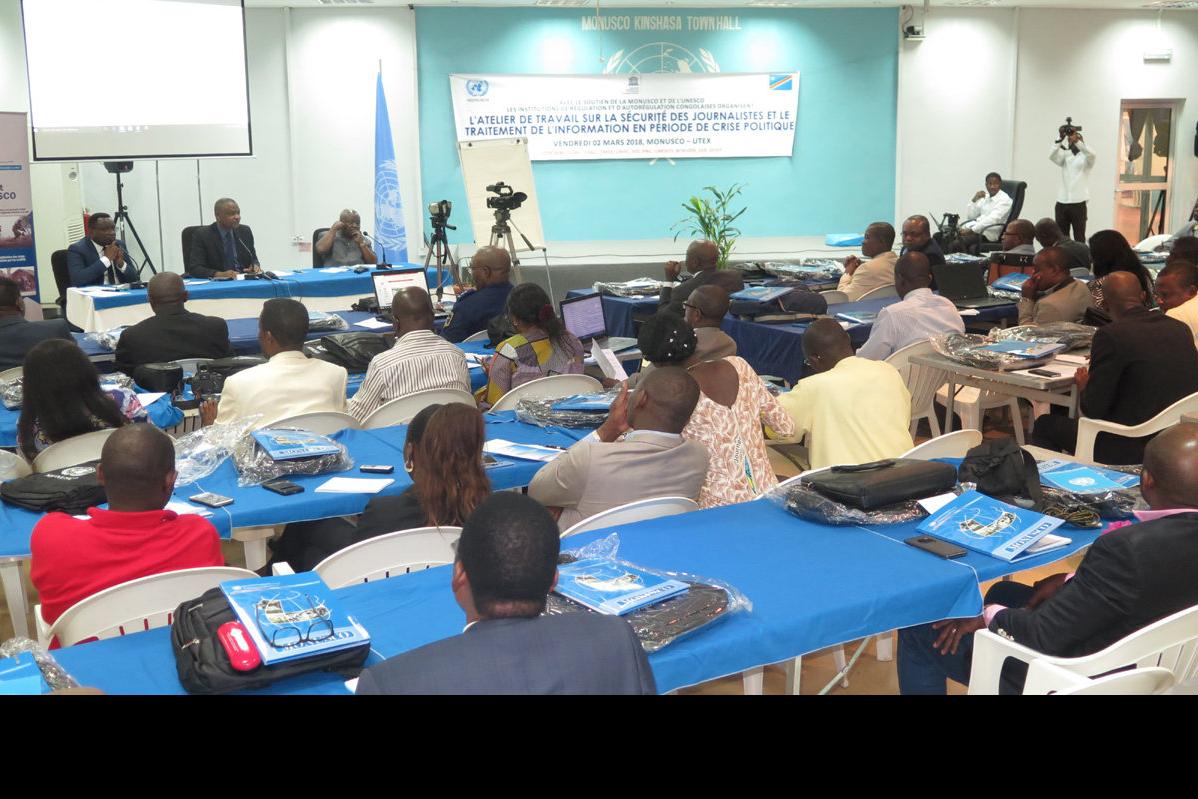 Atelier de formation des journalistes sur la communication en période de crise. Photo MONUSCO/David Fundi Sumaili Kinshasa, le 2 mars 2019 – Une centaine de représentants des médias congolais ont été préparés et aidés à mieux…