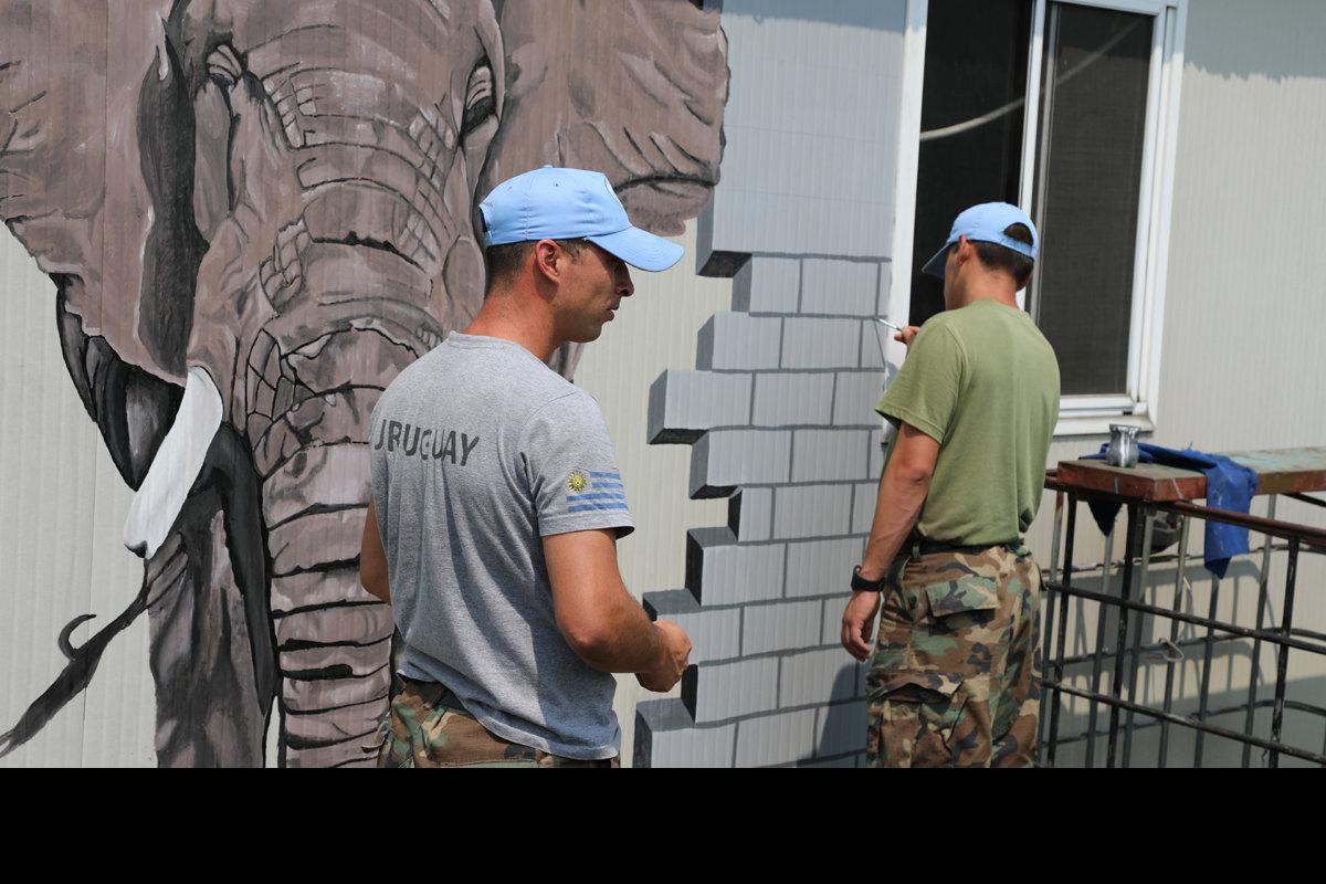 Casques bleus uruguayens s'adonnant à la peinture. Photo MONUSCO/Michael Ali Goma, le 26 février 2018 – A peine le pied posé dans l’enceinte du bataillon uruguayen de la MONUSCO à Goma, le visiteur remarque d’emblée ce…