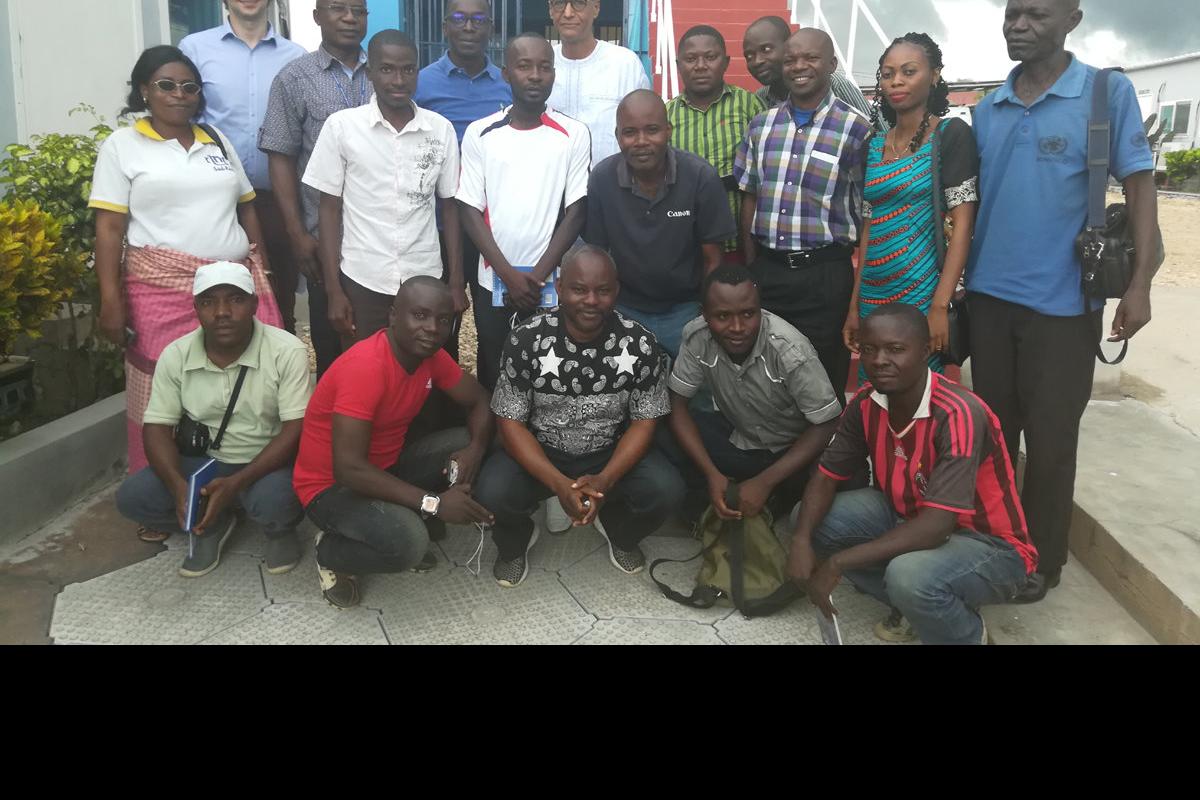 Photo de famille du chef de bureau de la monusco Uvira avec le premier noyau de journalistes pour la promotion des Droits de l'homme. Photo MONUSCO/Bilamekaso Tchagbele Uvira, le 26 février 2018 – Former un groupe de…