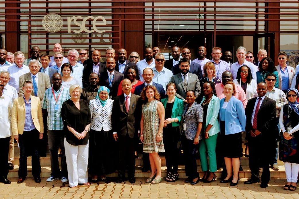 Photo prise le 04 juillet 2017 à Entebbe (RSCE) lors des assises entre le Sous-Secrétaire Général Mr. Atul Khare (au milieu) avec les Représentants du Personnel Local de toutes les Missions ainsi que Mme Chhaya Kapilashrami…