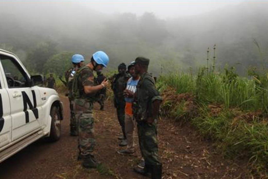 Les Casques bleus de la MONUSCO interagissant avec les FARDC lors d’une patrouille à Katalo. Photo MONUSCO/Force La mobilité : c’est le maître-mot de l’action de la force, depuis la fermeture d’un certain nombre de bases…
