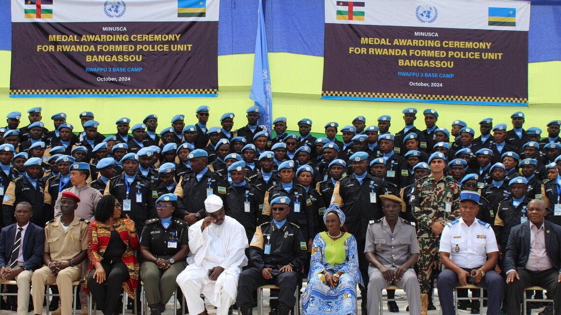 Le 15 octobre 2024, les Casques bleus de la 3e rotation du contingent de la Police constituée rwandaise de la MINUSCA, stationnés à Bangassou, ont reçu la médaille de l'ONU pour leur engagement au service de la population…