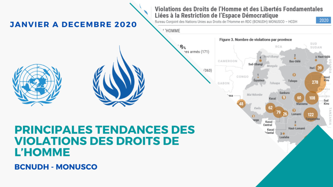 En 2020, le BCNUDH a documenté 7.909 violations et atteintes aux droits de l’homme en République démocratique du Congo, ce qui représente une moyenne de 659 violations par mois. Ces chiffres sont en hausse de l’ordre de 21%…