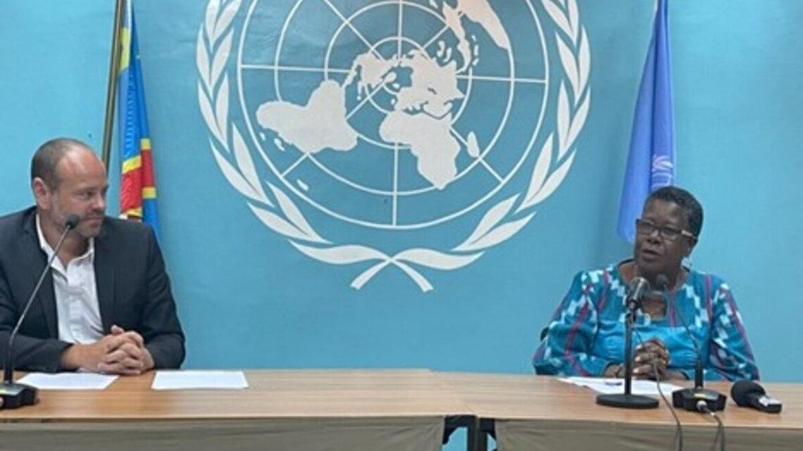 Le porte-parole de la MONUSCO, Mathias Gillmann et la Représentante régionale du HCR, Mme Liz Ahua lors de la conférence de presse du 16 juin 2021 à Kinshasa A quelques jours de la célébration de la Journée mondiale du…