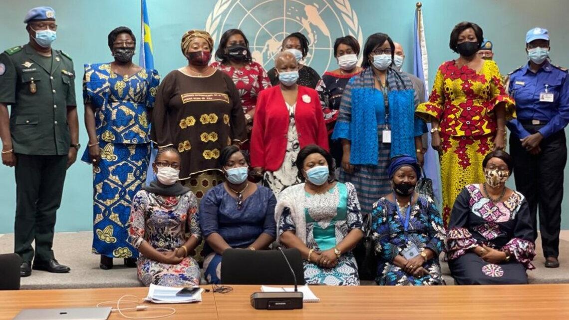 Photo de famille après la 3e réunion du cadre régulier d’échange entre la MONUSCO et le réseau des femmes leaders africaines (AWLN) le 14 juin 2021 a Kinshasa. Comment s’organise le travail de la Force de la MONUSCO et de la…