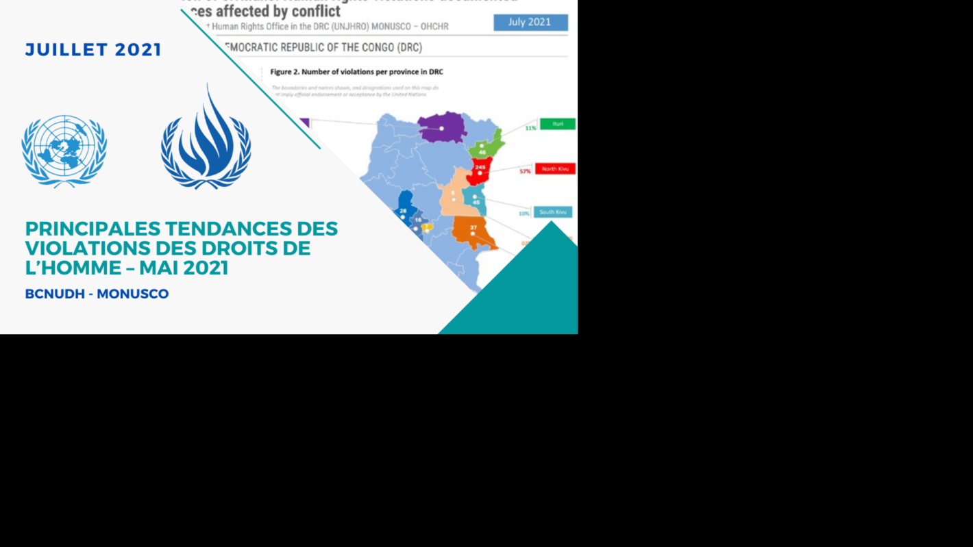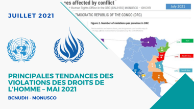 Durant le mois de juillet 2021, le BCNUDH a documenté 492 violations des droits de l’homme sur tout le territoire de la République démocratique du Congo, soit une diminution de 21% par rapport au mois de juin (624 violations)…