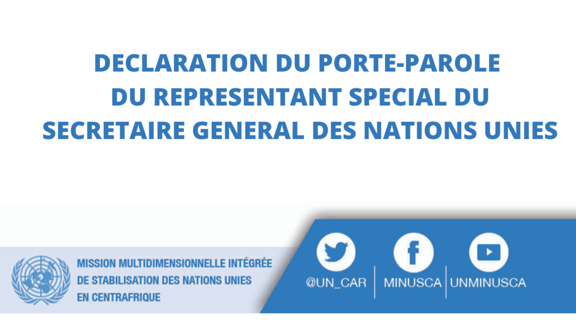 DÉCLARATION DU PORTE-PAROLE DU REPRÉSENTANT SPÉCIAL DU SECRÉTAIRE GÉNÉRAL DES NATIONS UNIES EN RÉPUBLIQUE CENTRAFRICAINE ET CHEF DE LA MINUSCA