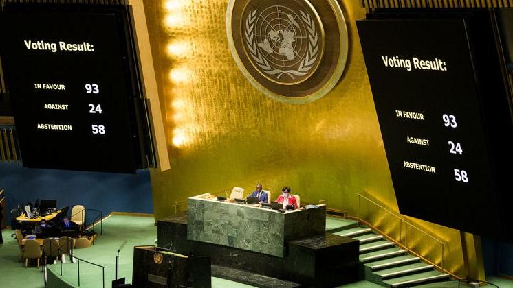 В штаб-квартире ООН в Нью-Йорке в ходе возобновленной 11-й чрезвычайной спецсессии Генеральная Ассамблея ООН проголосовала за приостановление членства России в Совете ООН по правам человека. Предложенную Украиной в соавторстве с 58 странами резолюцию поддержали 93 государства. 24 делегации выступили против, и 58 воздержались.