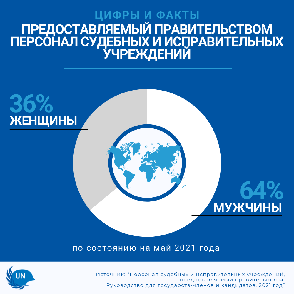 В Стратегии гендерного паритета негражданского персонала Департамента операций по поддержанию мира 2018 года изложены конкретные шаги по расширению значимого участия женщин в операциях по поддержанию мира, включая число женщин-офицеров ППП, служащих в судебных и исправительных учреждениях. Установленный Стратегией на 2021 год целевой показатель в 29% был превышен: по состоянию на май 2021 года женщины составят 36% от общего числа ППП в системе правосудия и исправительных учреждений, участвующих в операциях ООН по поддержанию мира. Для дальнейшего увеличения доли женщин в составе ППП, системам правосудия и исправительным учреждениям ДМО следует:
